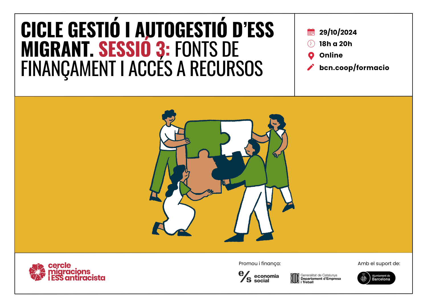 Des del cercle de Migracions ens proposen un programa formatiu que té com a objectiu compartir eines per impulsar processos i projectes de gestió i autogestió, enfocats a iniciatives dins de l’àmbit de l’Economia Social i Solidària Migrant.