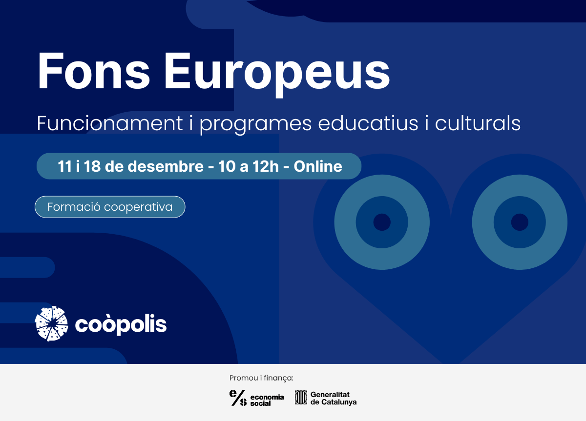 Aquesta formació busca apropar aquests recursos europeus a les entitats i cooperatives i posar-los al seu abast, així com reconèixer el potencial d’intercooperació que tenen els seus programes i el funcionament general.