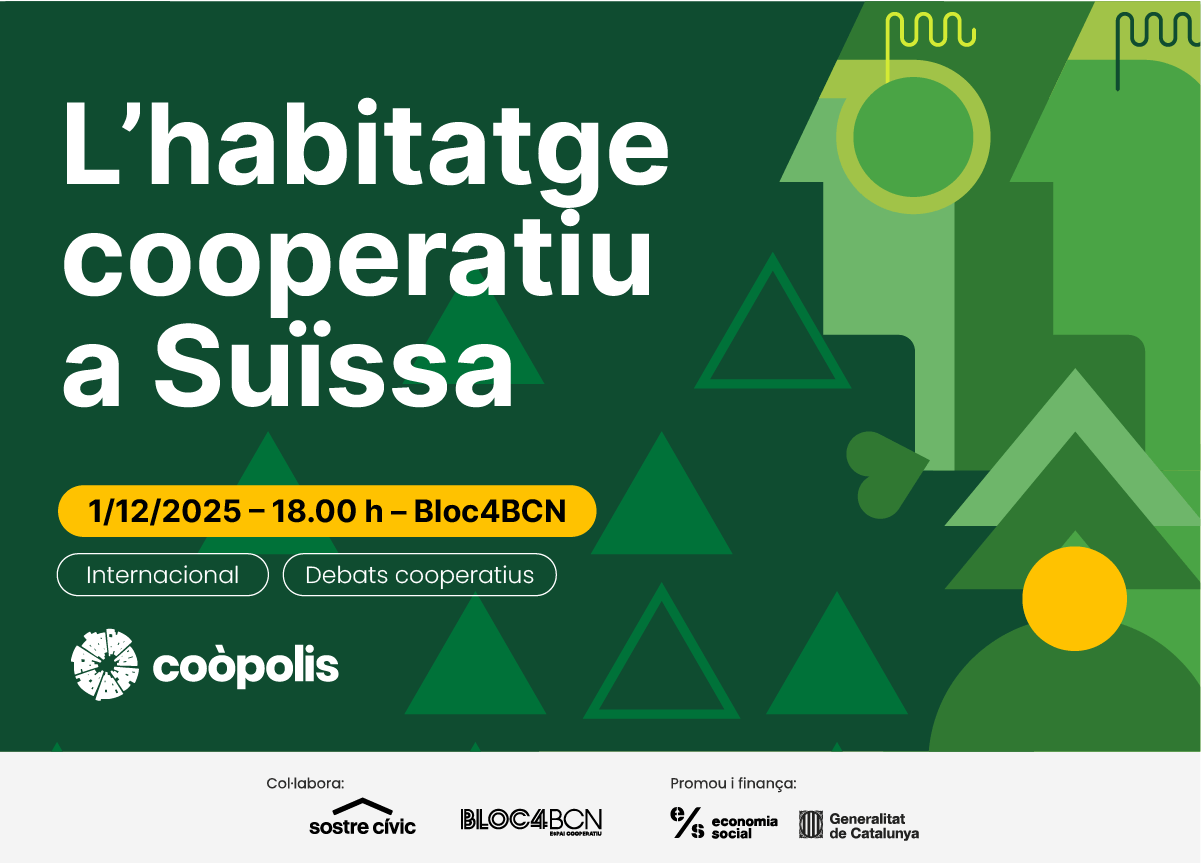 La cooperativa Sostre Cívic oferirà una sessió de presentació adreçada al sector cooperatiu d’habitatge de Catalunya. Diferents membres de la cooperativa explicaran el seu darrer viatge a Suïssa —a les ciutats de Zúric i Ginebra— per conèixer de primera mà iniciatives d’habitatge cooperatiu consolidades al país. Explicaran els principals aprenentatges, les claus del seu funcionament i quines estratègies aplicables poden ser reproduïbles a Catalunya.