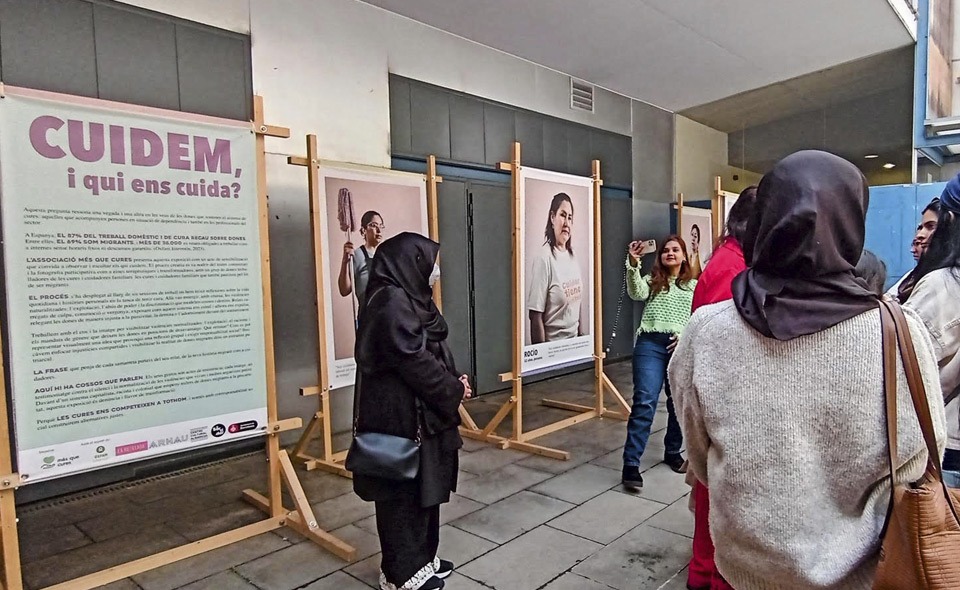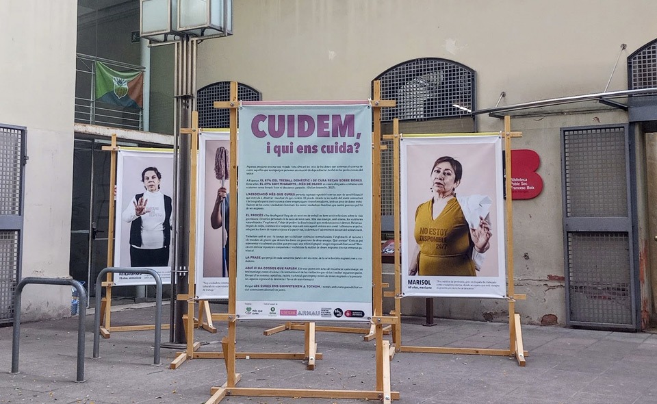 Per reforçar aquesta bretxa es compta amb l’exposició fotogràfica ‘Cuidem, i qui ens cuida?’ de Més que Cures, que fa ja temps que fa el seu recorregut per diferents espais de la ciutat de Barcelona. Set dones cuidadores que han transformat les seves històries en imatges potents, a través del teatre i la creació col·lectiva, parlant des de la força organitzada i recordant totes aquelles violències que tantes vegades s’han silenciat: jornades interminables, disponibilitat constant, invisibilitat, etc. Un projecte que convida a treballadores de les cures i cuidadores familiars a participar d’un espai creatiu i col·lectiu per reflexionar, compartir emocions i donar visibilitat al valor de la seva feina a través de la fotografia participativa. Una mostra impulsada per l’Associació Més Que Cures, amb La Revelada, @teatrearnauitinerant, i el suport d’Oxfam Intermón i de l’Ajuntament de Barcelona.