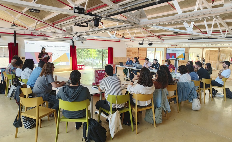 Des de Coòpolis s’ha presentat el Marc Estratègic 2024-2027, que estableix les línies de treball per als anys vinents. També s’ha destacat la tasca de l’àrea d’investigació i observatori, encarregada de generar coneixement, fer seguiment dels projectes i avaluar-ne l’impacte a través de les memòries anuals.